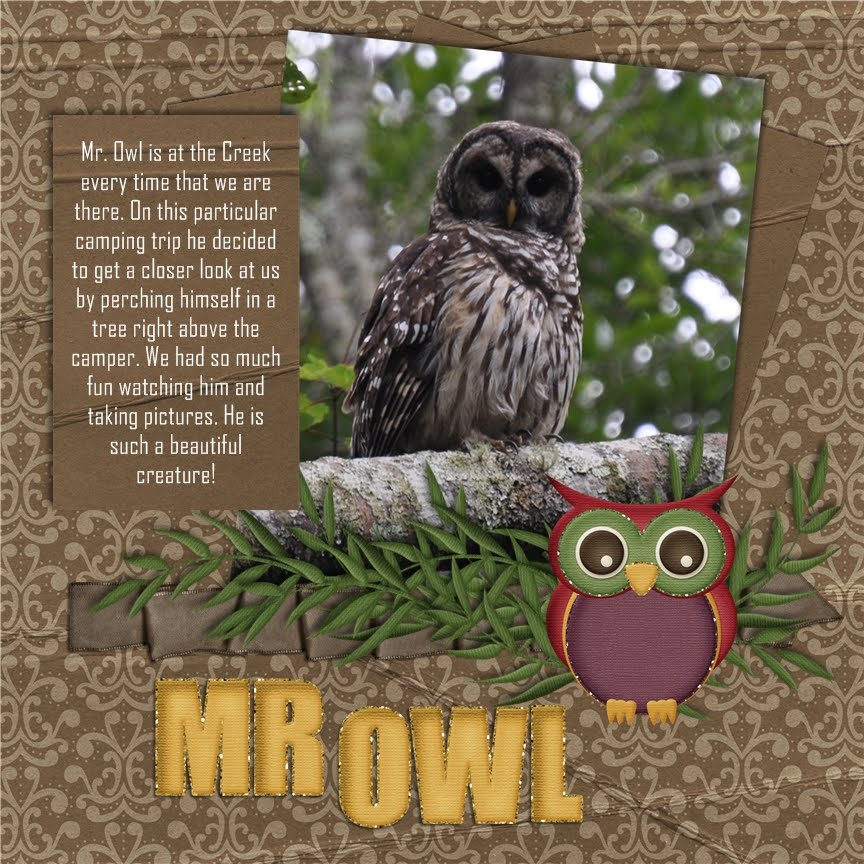 Today's inspiration comes from Kerri and isn't this owl gorgeous! Great double layout Kerri! Remember...to think outside the box on your kits, I'm sure you will come up with some FABULOUS layouts yourself and then please share on my Facebook page. I'd like to see them too! Happy Scrappin' :)